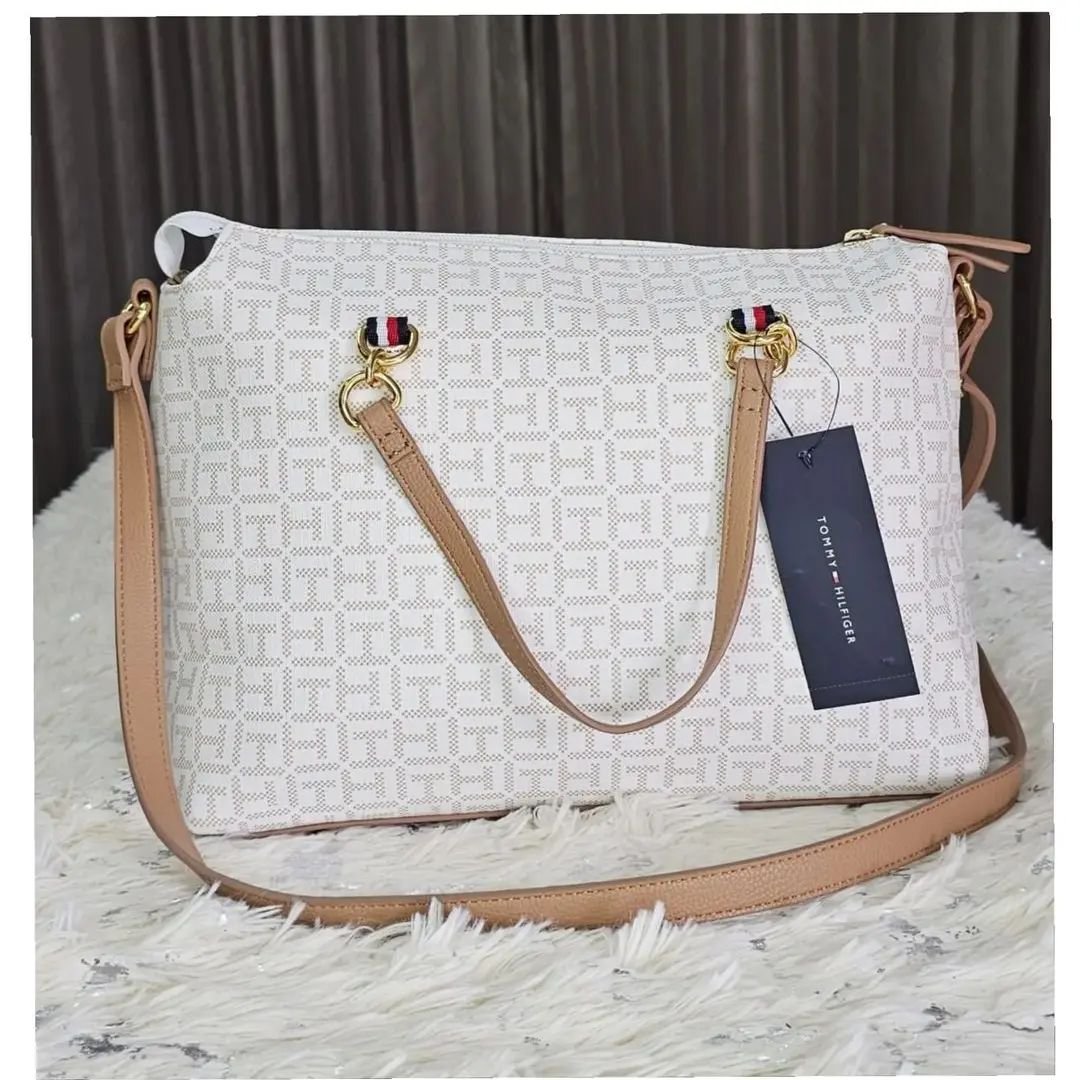 Spacious and stylish, this khaki tote bag is ideal for carrying all your essentials, making it perfect for both work and casual outings.